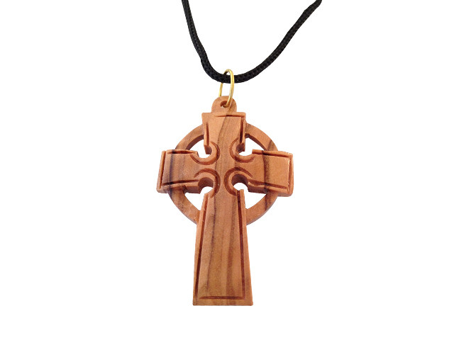 This beautiful olive wood Celtic Cross pendant comes with an adjustable size 12" black cord. Each cross comes with explanation card about the olive wood.