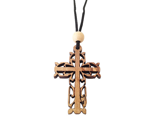 Olive Wood Filigree Cross W/Cord 1.6 inches in Height