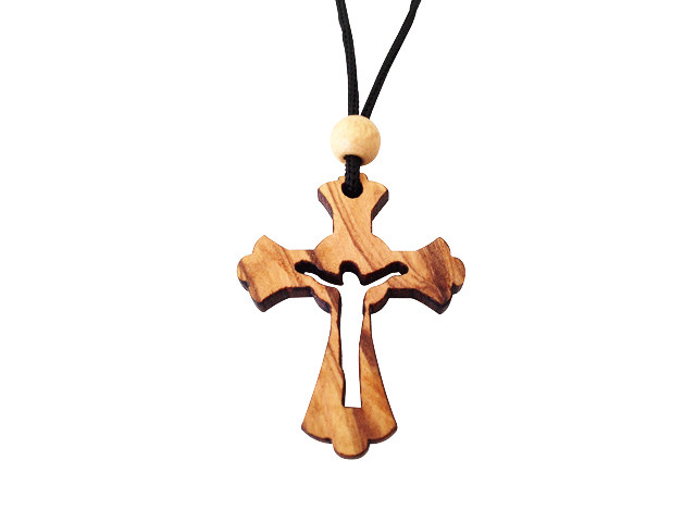 Olive Wood Risen Cross W/Cord 1.6 inches in Height